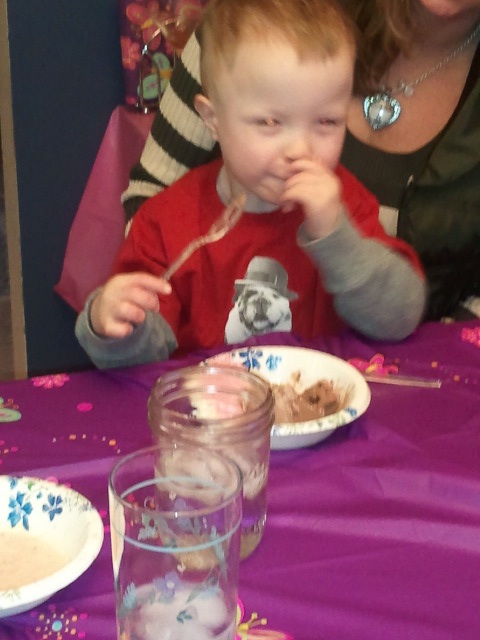 Ty checking out all his goodies in his gift bag. He just dumped everything out and went through it.